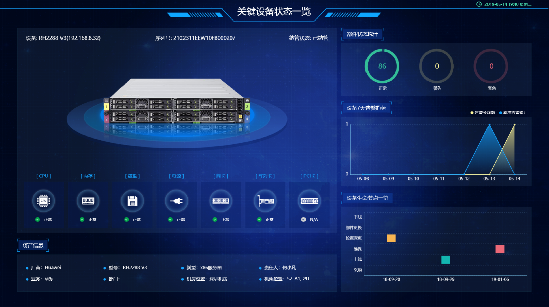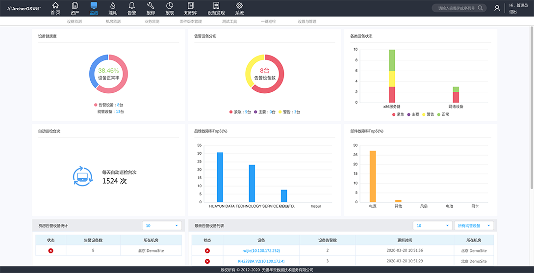 实现对机房设备状态数据的准确收集,统一集中展现IT系统的整体健康状态、服务能力等信息,多种方式供管理员实时掌握设备的运行状况。