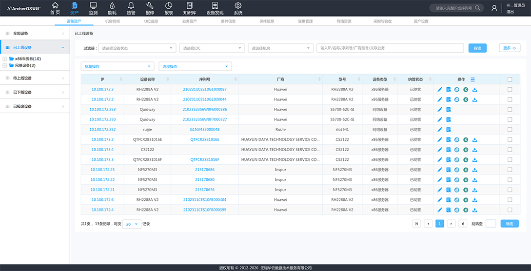 对“U位级”资产自动化管理,实现实时定位资产到U位,自动变更资产上下架信息。